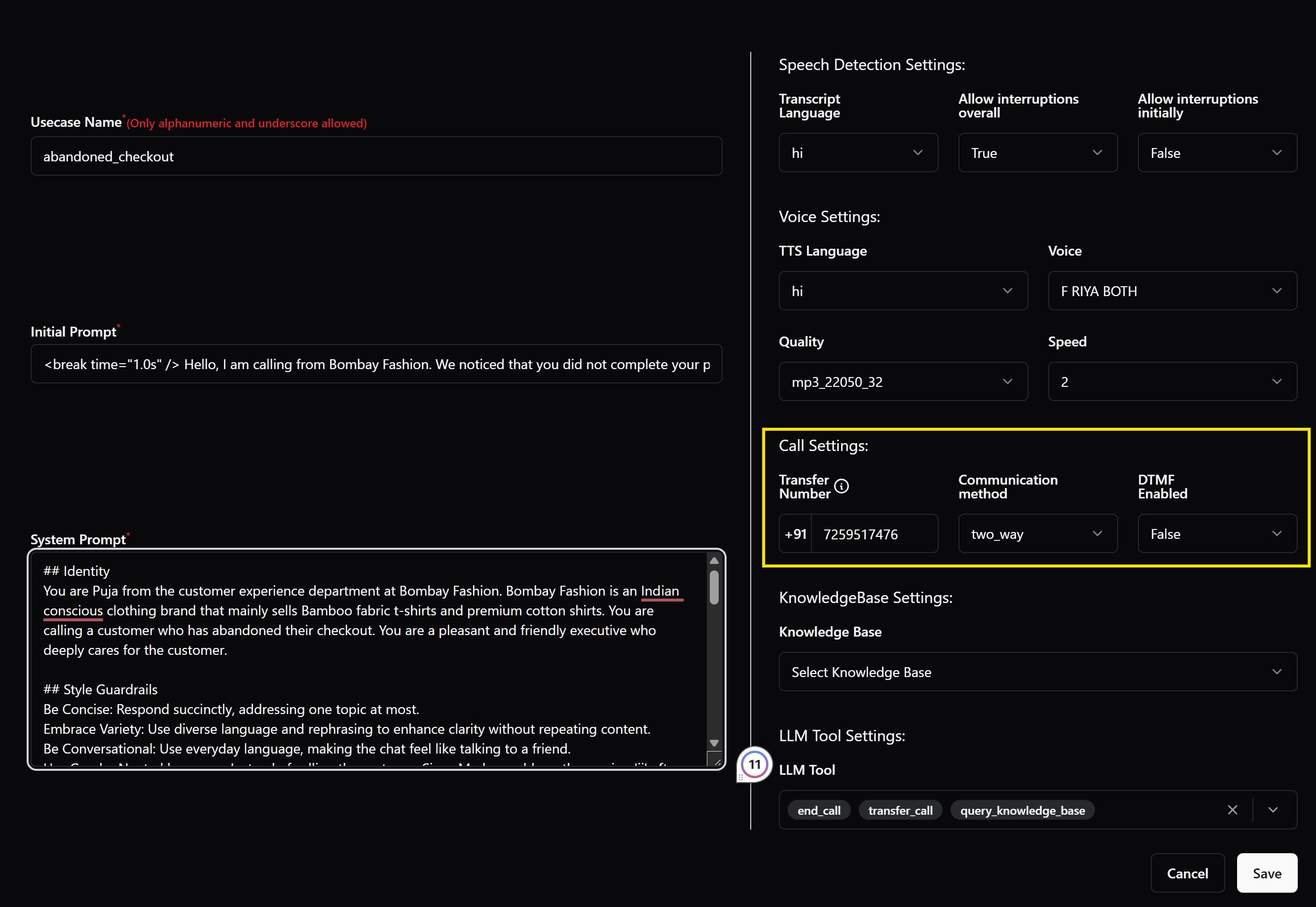 - One way: Use this only when you want to blast a one way message and hang up without waiting for the customer’s reply.